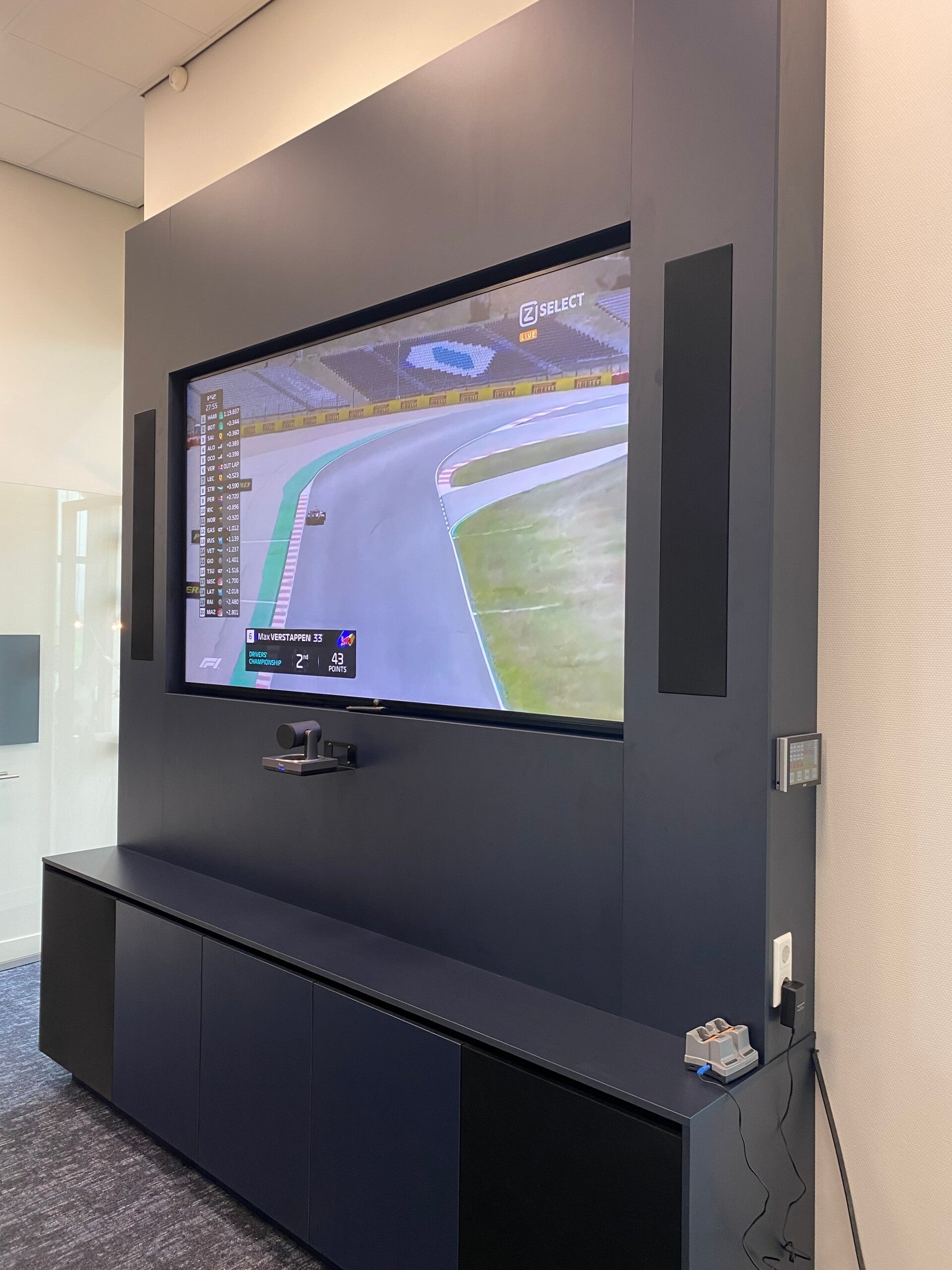 Links en rechts naast het scherm de LX 100 en onderin de AS 22 subs.